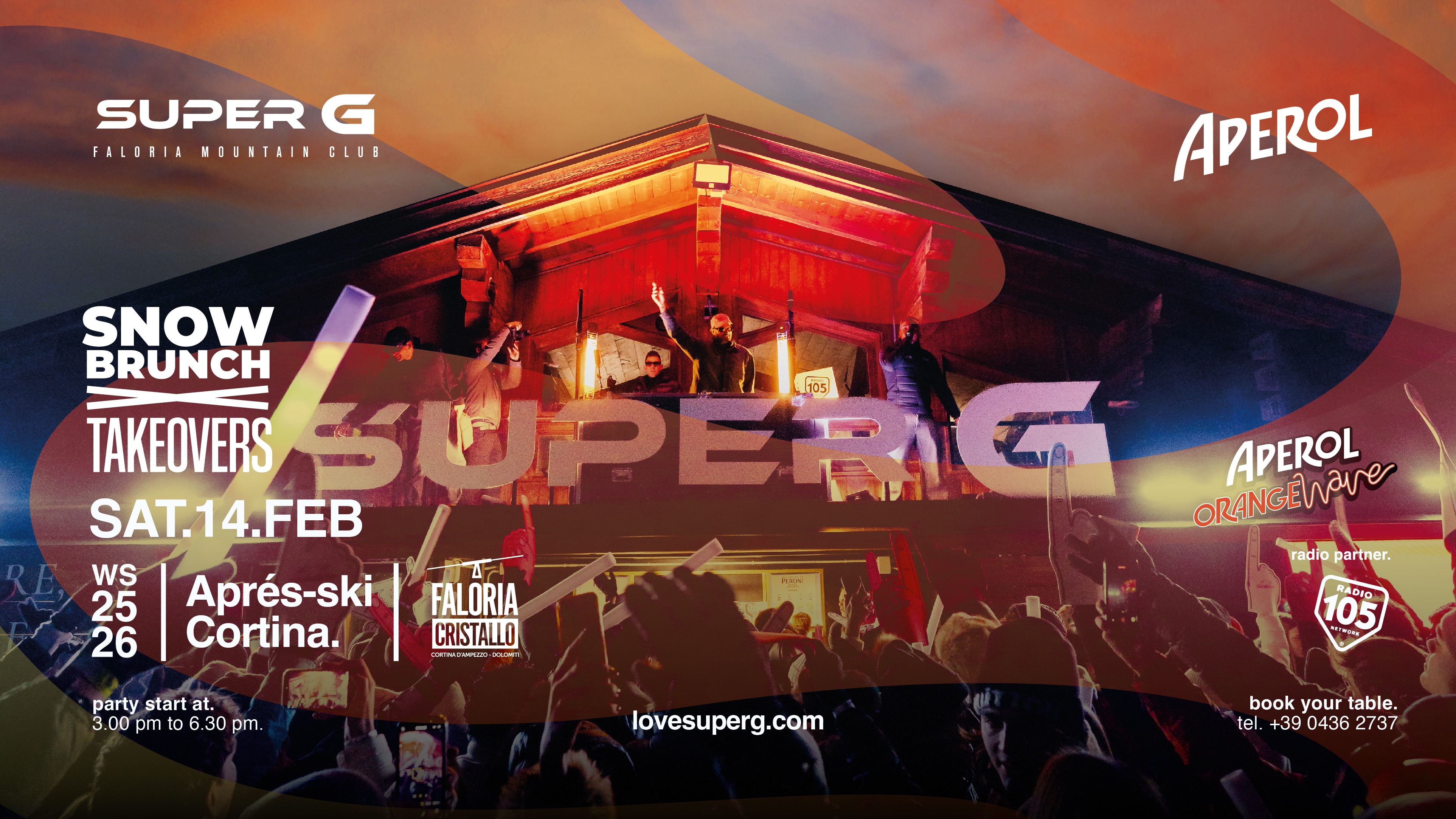 Super G - Faloria Mountain Club si accende come un palco sospeso tra le Dolomiti: dj set, live act, visual e special effects trasformano la terrazza in un’esperienza immersiva, musicale e imprevedibile e rendono ogni appuntamento unico.